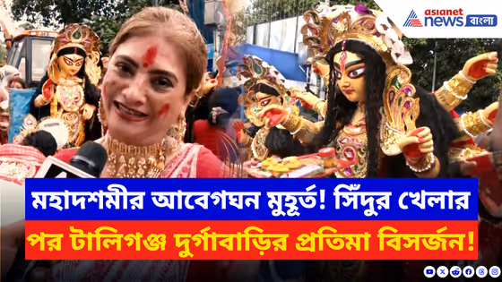 আজ মহাদশমী। মণ্ডপ থেকে প্রতিমা ঘাটে নিয়ে আসা হচ্ছে অনেক প্রতিমা। টালিগঞ্জ দুর্গা বাড়ির প্রতিমা বিসর্জন। সিঁদুর খেলার পরই হয় প্রতিমা বিসর্জন। ৩০০ বছর ধরে চলে আসছে এই ঐতিহ্যবাহী দুর্গোৎসব।