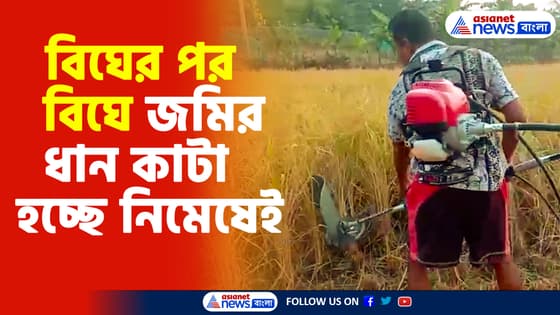 সুন্দরবনে আধুনিক প্রযুক্তিতে বিঘের পর বিঘে জমির ধান কাটা হচ্ছে নিমেষেই, দেখুন ভিডিও