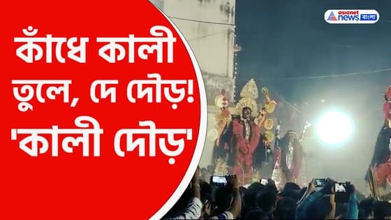 ঘাড়ে কালী তুলে দে দৌড়! মালদার শতাব্দী প্রাচীন 'কালী দৌড়'। ৮ টি কালী প্রতিমাকে কাঁধে তুলে ছোটেন গ্রামবাসীরা। এমন প্রাচীন রীতি দেখলে আপনিও চমকে উঠবেন। মালদার চাঁচলের এই 'কালী দৌড়' প্রায় ৩৫০ বছরের পুরনো।