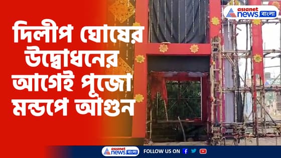 দিলীপ ঘোষের উদ্বোধনের আগেই পূজো মন্ডপে আগুন ধরিয়ে দেওয়ার অভিযোগ