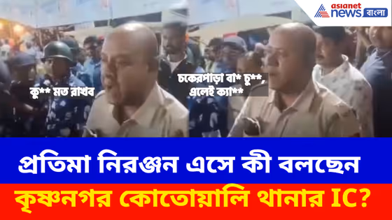 নদিয়া কৃষ্ণনগরে প্রতিমা নিরঞ্জনকে কেন্দ্র করে উত্তেজনা। জনতা–পুলিশ ধস্তাধস্তি ও লাঠিচার্জ হয়। এরই মাঝে ভাইরাল হয় কৃষ্ণনগর কোতোয়ালি থানার IC ভিডিও। তিনি চকেরপাড়া বারোয়ারি পুজোকে অশ্রাব্য ভাষায় গালিগালাজ করে।