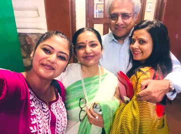 মহুয়া মৈত্র যদিও এখনও পর্যন্ত বিয়ে নিয়ে কিছুই বলেননি। সোস্যাল মিডিয়ায় সম্পূর্ণ নীরব। কিন্তু তাঁর সোলানি শাড়ি আর লজ্জায় অবনত মুখের ছবি সোশ্যাল মিডিয়ায় ভাইরাল। সঙ্গে রয়েছেন তাঁর স্বামী পিনাকী মিশ্র। তাঁর মুখে লেগে রয়েছে হাসি। পাঞ্জাবি, জ্যাকেট আর কালো চশমায় রীতিমত হ্যান্ডসাম। যাইহোক নিজেদের পুরনো একটি ছবি শেয়ার করে সায়নী শুভেচ্ছা জানিয়েছেন মহুয়া আর পিনাকীকে। তিনি লিখেছেন 'তোমাদের আজীবন ভালবাসা আর হাসি কামনা করছি।' সায়নী যে ছবিটি পোস্ট করেছেন সেখানে জুন আর পিনাকী মিশ্রও রয়েছেন।
