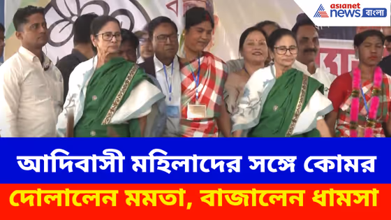 মালদার জনসভা শেষ হওয়ার পর মঞ্চ থেকে নামার সময় আদিবাসী মহিলাদের সঙ্গে কোমর দোলালেন মুখ্যমন্ত্রী মমতা বন্দ্যোপাধ্যায়। এরপর ধামসা মাদলও বাজালেন তিনি।