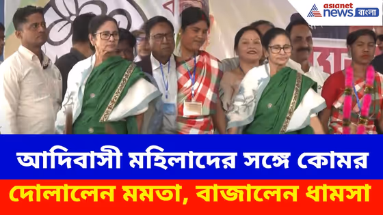 Mamata Banerjee : মালদার জনসভা শেষ হওয়ার পর মঞ্চ থেকে নামার সময় আদিবাসী মহিলাদের সঙ্গে কোমর দোলালেন মুখ্যমন্ত্রী মমতা বন্দ্যোপাধ্যায়। এরপর ধামসা মাদলও বাজালেন তিনি।