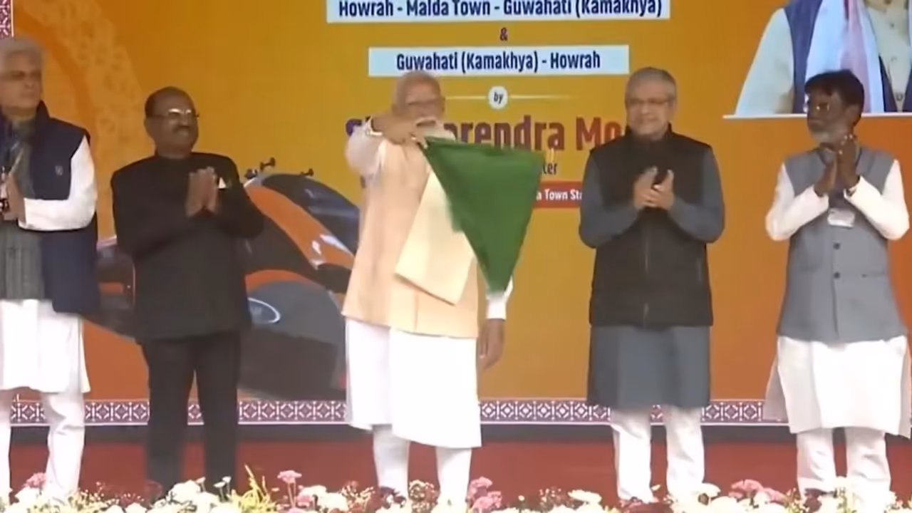 মালদা থেকে দেশের প্রথম বন্দে স্লিপার ট্রেনের উদ্বোধন করলেন প্রধানমন্ত্রী নরেন্দ্র মোদী। কথা বললেন ট্রেনের চালক এবং ইঞ্জিনিয়ারদের সঙ্গে। এই ট্রেনেই সফর করছেন তিনি। প্রধানমন্ত্রী ভার্চুয়ালি গুয়াহাটি (কামাখ্যা)–হাওড়া বন্দে ভারত স্লিপার ট্রেনটিরও উদ্বোধন করেন। মোদী পশ্চিমবঙ্গ ও আসামে দুই দিনের সফরে রয়েছেন এবং তিনি বেশ কয়েকটি রেল ও সড়ক প্রকল্পের ভিত্তিপ্রস্তর স্থাপন ও উদ্বোধন করবেন। মালদায় একটি জনসভায় মোদী ৩,২৫০ কোটি টাকারও বেশি মূল্যের একাধিক রেল ও সড়ক পরিকাঠামো প্রকল্পের ভিত্তিপ্রস্তর স্থাপন করবেন।
