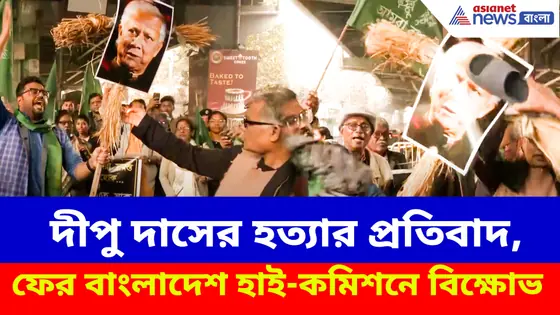 দীপু দাসের হত্যার প্রতিবাদ, ফের বাংলাদেশ হাই-কমিশনে বিক্ষোভ, দাহ ইউনুসের কুশপুতুল