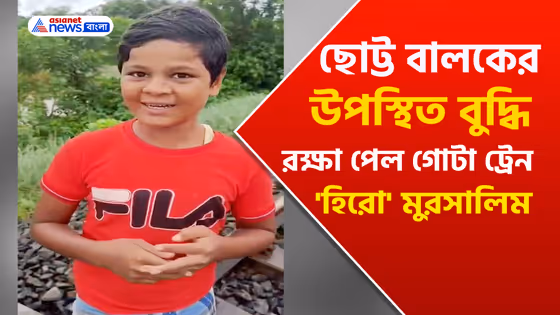 পঞ্চম শ্রেণির ছাত্রের বুদ্ধিতে ভয়ঙ্কর বিপদ থেকে রক্ষা পেল ট্রেন। গায়ের লাল গেঞ্জি খুলেই ট্রেন দাঁড় করিয়ে দিল ছোট্ট বালক। মুহূর্তে বেঁচে গেল কয়েকশো যাত্রীর প্রাণ। ঘটনাস্থল মালদা জেলার ভালুকা রোড স্টেশন সংলগ্ন এলাকা। পঞ্চম শ্রেণীর ওই বালকের নাম মুরসালিম। লাইন দিয়ে দুরন্ত গতিতে ছুটে আসছিল আপ কাঞ্চনজঙ্ঘা এক্সপ্রেস। আর ওই লাইনেই বেশ কিছুটা অংশ মাটি সরে গিয়ে বড় গর্ত হয়েগিয়েছিল। গর্তটি দেখেই বালক মুরসালিম ট্রেনটিকে দাঁড় করায়। গোটা ঘটনার ভিডিও সামাজিক মাধ্যমে ভাইরাল।