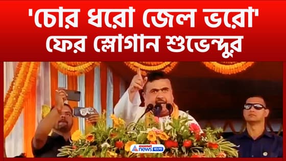'১০০দিনের কাজের টাকা সবচেয়ে বেশি চুরি হয়েছে', তৃণমূলকে আক্রমণ শুভেন্দুর। 'চোর ধরো জেল ভরো', কালিয়াগঞ্জের সভায় ফের স্লোগান শুভেন্দুর। আবাস যোজনায় দুর্নীতি নিয়ে এদিন তৃণমূলকে আক্রমণ করেন শুভেন্দু।