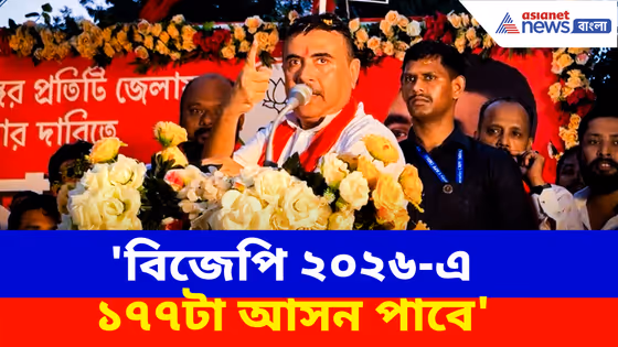 'বিজেপি ২০২৬-এ ১৭৭টা আসন পাবে'। 'বিজেপি ক্ষমতায় এলে মমতা বন্দ্যোপাধ্যায়কে মিথাশ্রী পুরস্কার দেব'। মন্তব্য শুভেন্দু অধিকারীর।
