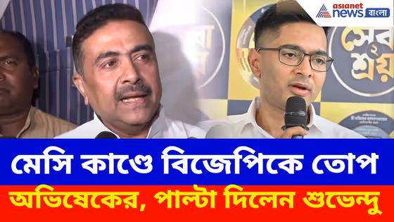 suvendu adhikari on abhishek banerjee: কলকাতার মেসি কাণ্ড নিয়ে তৃণমূলকে দায়ী করায় বিজেপিকে একহাত নিলেন অভিষেক বন্দ্যোপাধ্যায়। তাঁকে পাল্টা দিয়ে চরম আক্রমণ করলেন শুভেন্দু অধিকারী। দেখুন কী বলছেন।