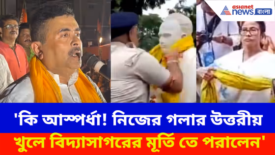 'কি আস্পর্ধা! নিজের গলার উত্তরীয় খুলে বিদ্যাসাগরের মূর্তি তে পরালেন' মমতাকে তিরস্কার শুভেন্দুর