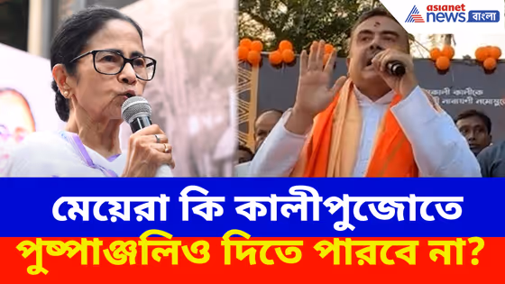 মেয়েরা কি কালীপুজোতে পুষ্পাঞ্জলিও দিতে পারবে না? মমতাকে প্রশ্ন শুভেন্দুর