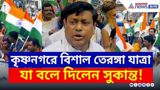 Tiranga Yatra Krishnanagar : কৃষ্ণনগরে বিজেপি'র তেরঙ্গা যাত্রা। জাতীয় পতাকা হাতে নিয়ে বিশাল তেরঙ্গা যাত্রা কৃষ্ণনগরে। কৃষ্ণনগরের তেরঙ্গা যাত্রায় অংশ নিলেন সুকান্ত মজুমদার।