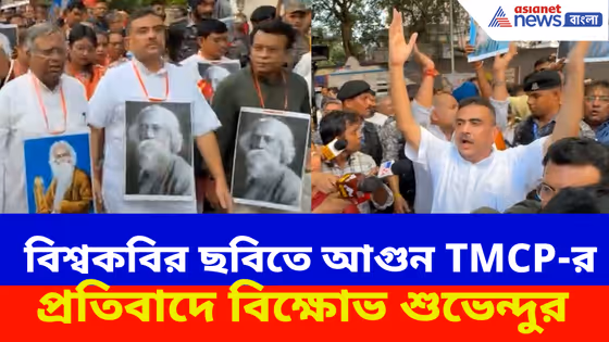 বিশ্বকবির ছবিতে আগুন TMCP-র, প্রতিবাদে পদযাত্রা করে বিক্ষোভ শুভেন্দুর